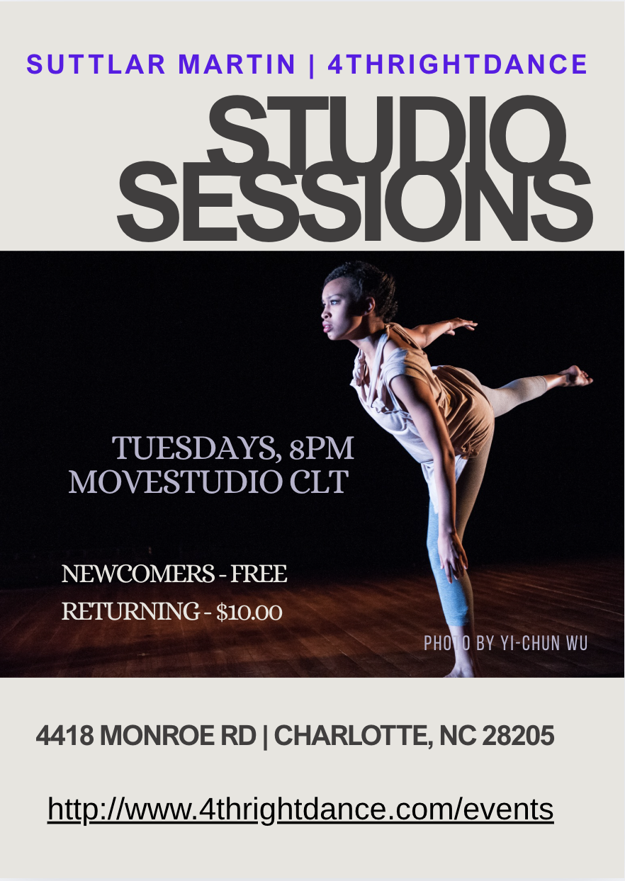 Studio Sessions are for Seasoned, Professional, and Pre-Professional artists with a desire to move and fortify Charlotte’s Artistic Community.